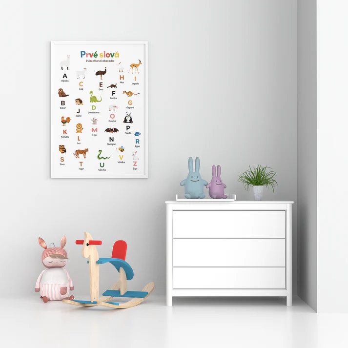 Každé písmeno abecedy je spojené s obrázkom predmetu z každodenného života, čo deťom uľahčuje zapamätanie si nových slov. Vďaka pútavým farebným ilustráciám sa učenie slovíčok stane vašou obľúbenou aktivitou. Stačí zavesiť plagát na viditeľné miesto a trénovanie jazýčkov môže začať.