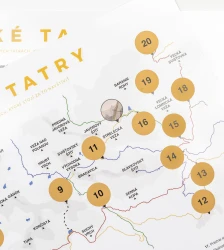Stieracia mapa Vysokých Tatier vo formáte A2 vám pomôže objaviť tie najkrajšie miesta vo Vysokých Tatrách. Zavedie vás na známe vrchy, krásne chaty aj k tatranským vodopádom, ktoré rozhodne stoja za návštevu. Tipy na výlety sú ukryté pod 20 stieracími políčkami na dizajnovom plagáte, ktorý poslúži ako pekná dekorácia a dozdobí stenu každého milovníka turistiky.